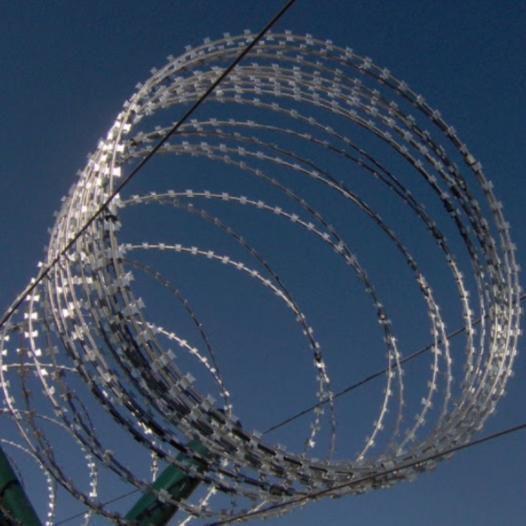 Bu ürün, yüksek mukavemetli galvanizli çelik tel üzerine preslenmiş keskin jiletlerden oluşur. Helezon form, telin açıldığında daha geniş alanı kapsamasını sağlar. Galvaniz kaplama sayesinde paslanmaya ve dış etkilere karşı dayanıklıdır.