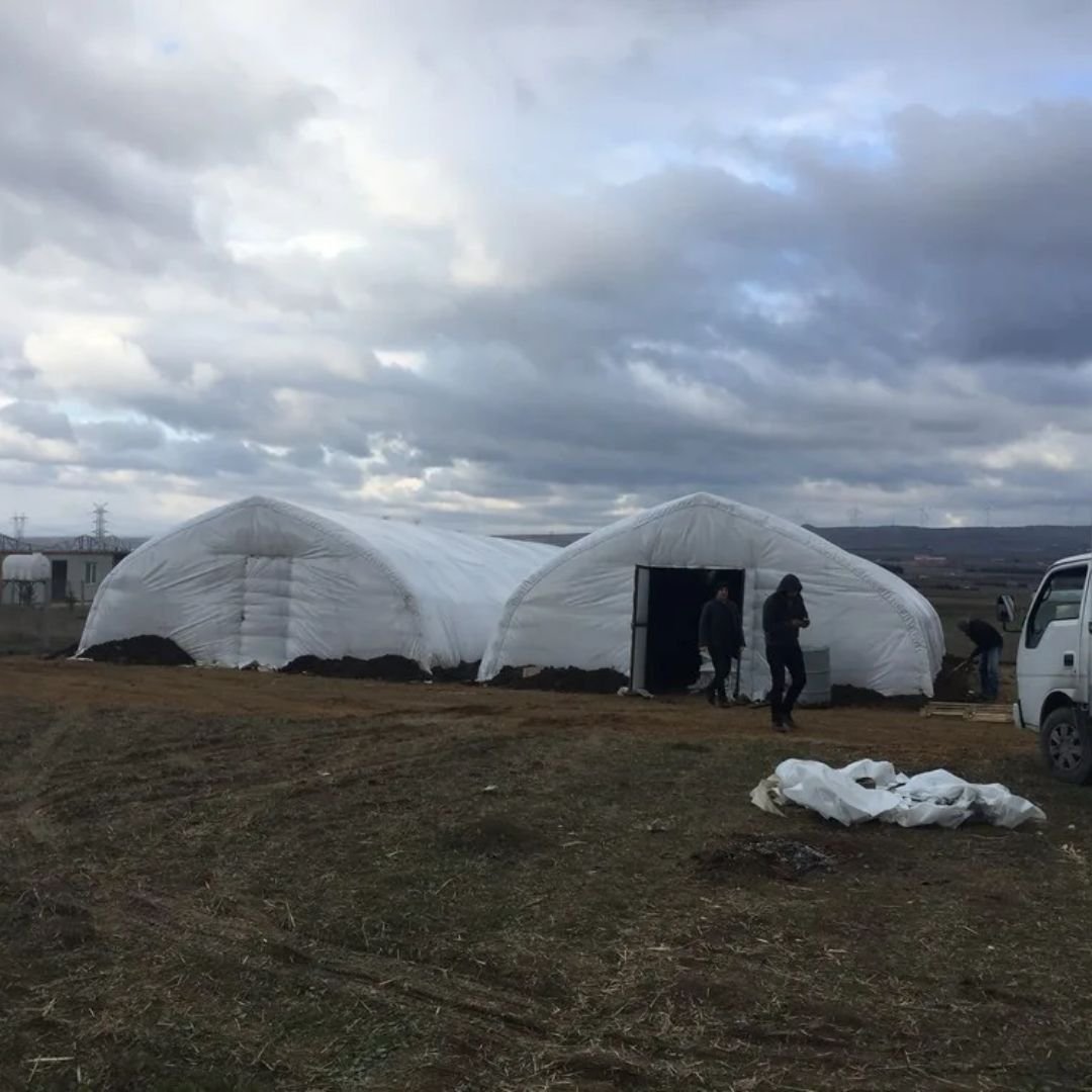 Mantar çadırı, kültür mantarı üretimi için özel olarak tasarlanmış dayanıklı ve hijyenik üretim alanları sağlar. UV korumalı, su geçirmez ve alev yürütmez PVC branda ile üretilir. Galvanizli çelik konstrüksiyon sayesinde uzun ömürlü kullanım sunar.