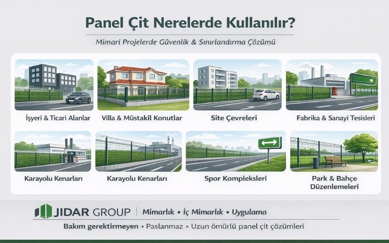 Park ve bahçe düzenlemeleri başta olmak üzere tüm yaşam alanlarının güvenliği için panel çit sistemleri kullanıma uygundur.